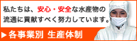 ▼さかな取扱品種:サバ/アジ/タコ/イカ/他。さかな事業全般の生産体制をご紹介いたします。厳しい品質基準を満たした魚のみをパッキングしてお客様にお届けしています。 |